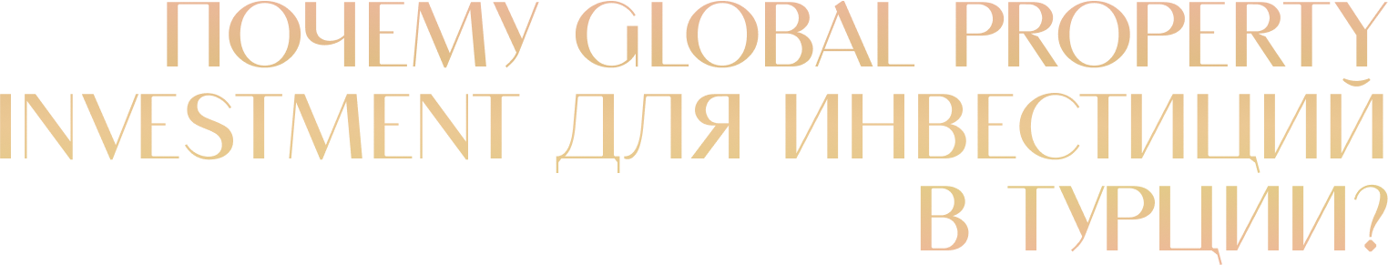 Выберите GLOBAL PROPERTY INVESTMENT, чтобы вместе с нами оценить потенциал инвестиций в недвижимость в Турции
